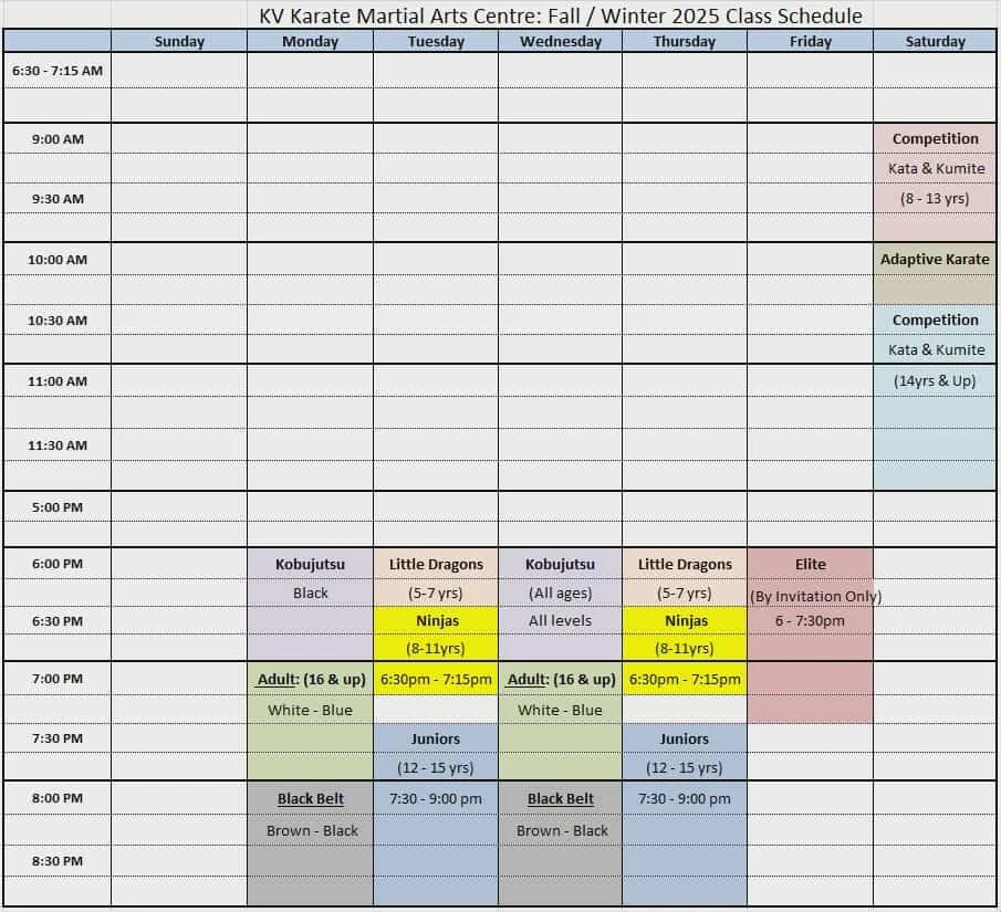 Please note: Classes may be canceled due to other events held at the dojo such as clinics and KNB team training.
